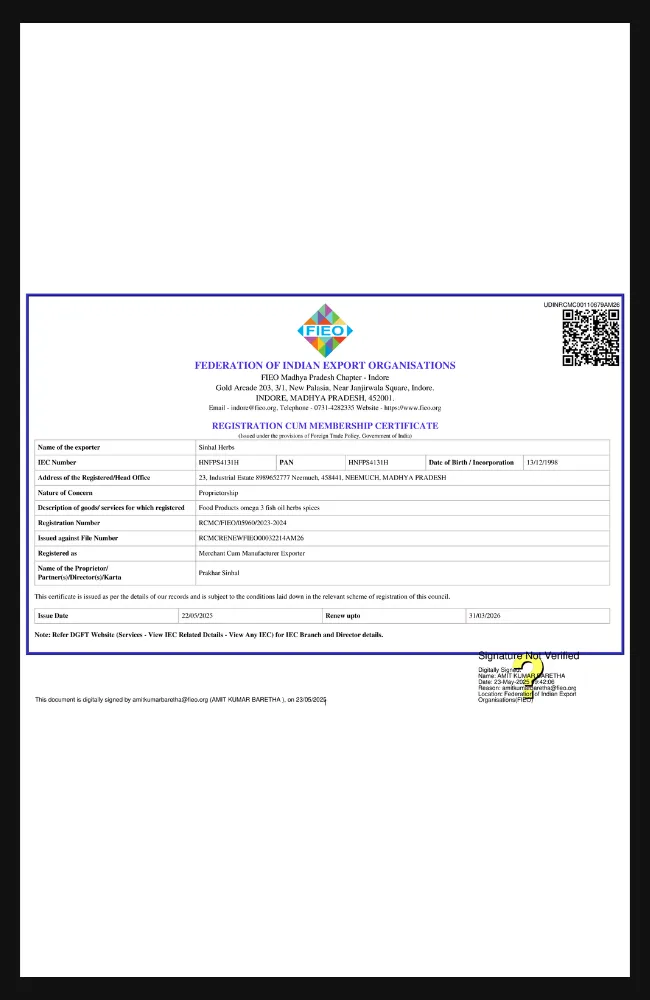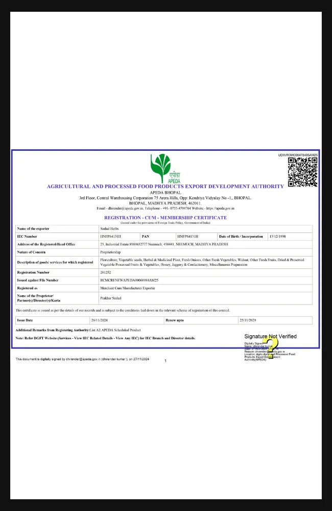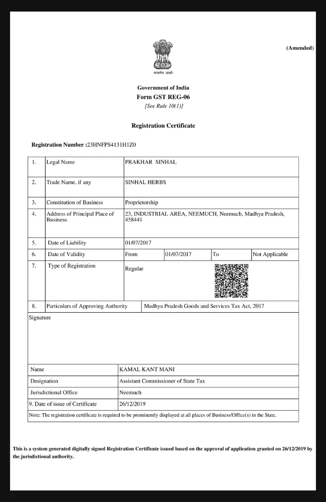 Registration Cum Membership Certificate