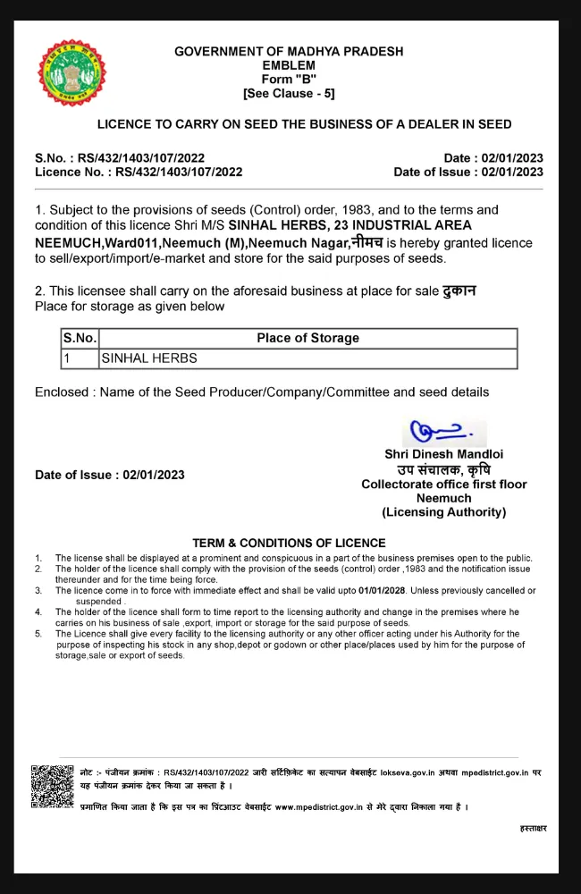 SEEDS DEALER LICENSE