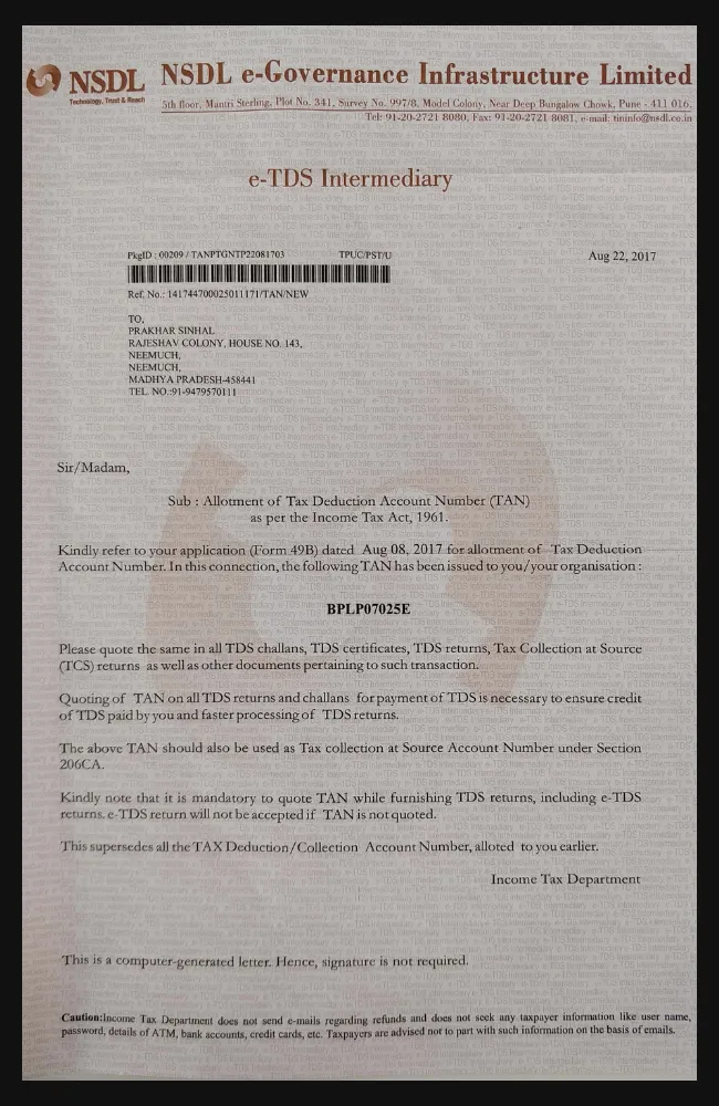 TAN - NSDL
